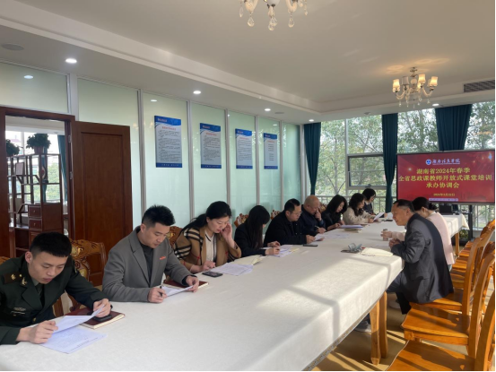 为顺利推进湖南省2024年春季全省思政课教师开放式课堂培训承办工作,我校于3月22日上午9:00在求实楼三楼会议室组织召开承办工作协调会。学校党委书记喻玲娜、副校长况守忠、马克思主义学院、教务处、校办、后勤处、宣传部等相关部门负责人参加了会议。