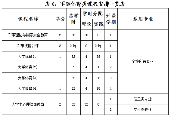 (4)军事体育类课程