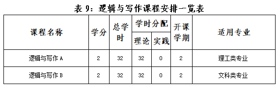 各专业开设《逻辑与写作》课程,共32学时,计2学分。