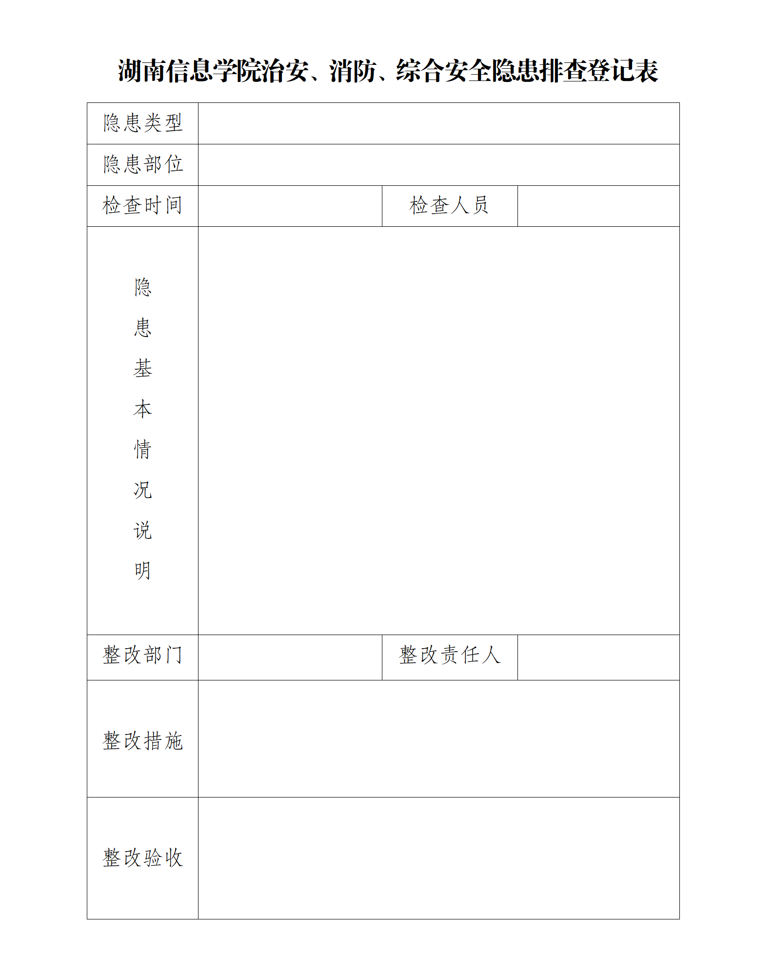 湖南信息学院治安、消防、综合安全隐患排查登记表