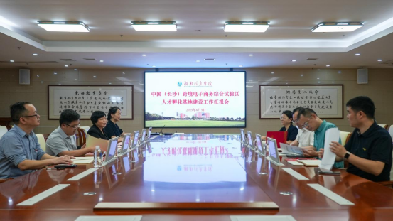 6月5日,长沙市商务局汪东华副局长、市委组织部人才二处(市委人才办)李明处长和市商务局马若楠处长、邱德诚副处长来湖南信息学院检查指导长沙市跨境电商人才孵化基地建设。我校李定珍副校长、国际商学院党总支陈加新书记、杨璐嘉副院长、熊国锋院长助理接待检查指导组一行并作专题汇报。