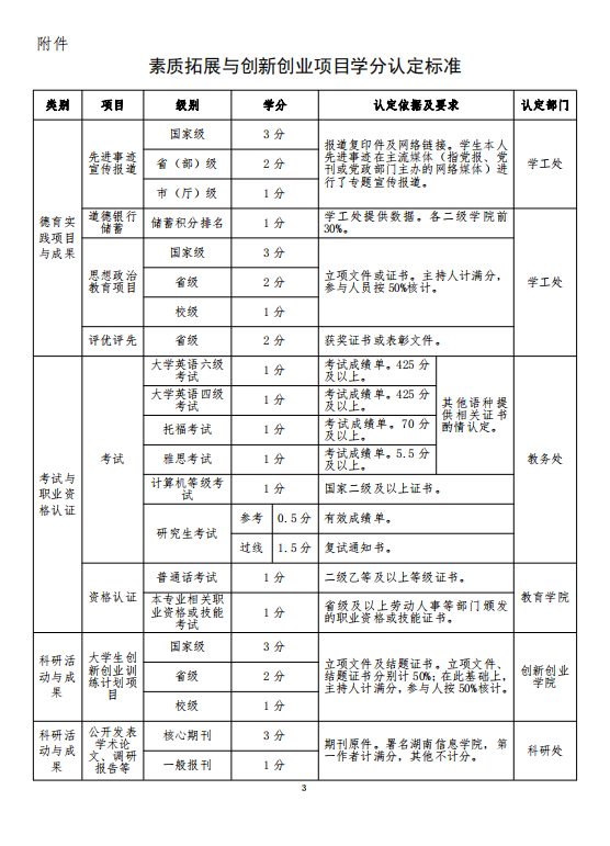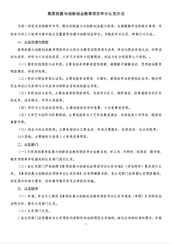 素质拓展与创新创业教育项目学分认定办法