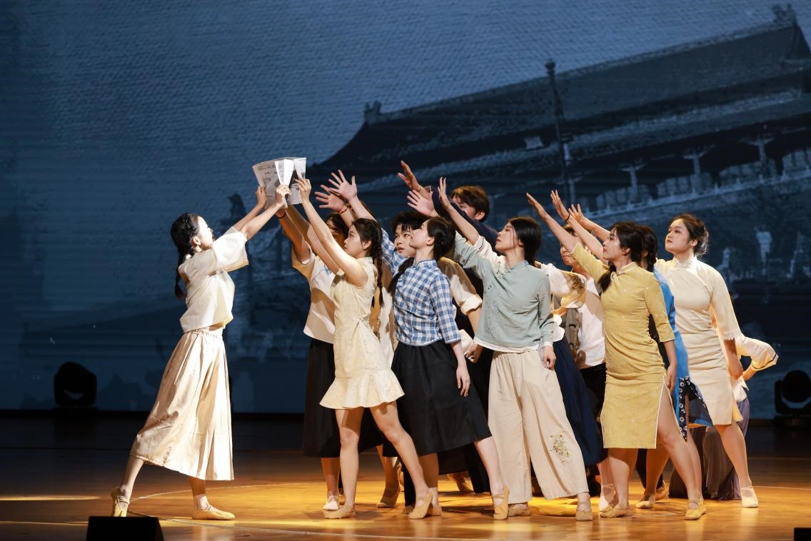 此次专业综合汇报演出由播音与主持艺术系主任张莎莎担任总导演,共分为三个篇章,分别是《当我们怦然心动时》《当我们不休不止时》《当我们奔赴山海时》。晚会在开场舞《爱乐之城》中拉开序幕,用轻快的节奏、青春洋溢的笑容和朝气蓬勃的舞蹈迅速唤起全场观众的热情。
