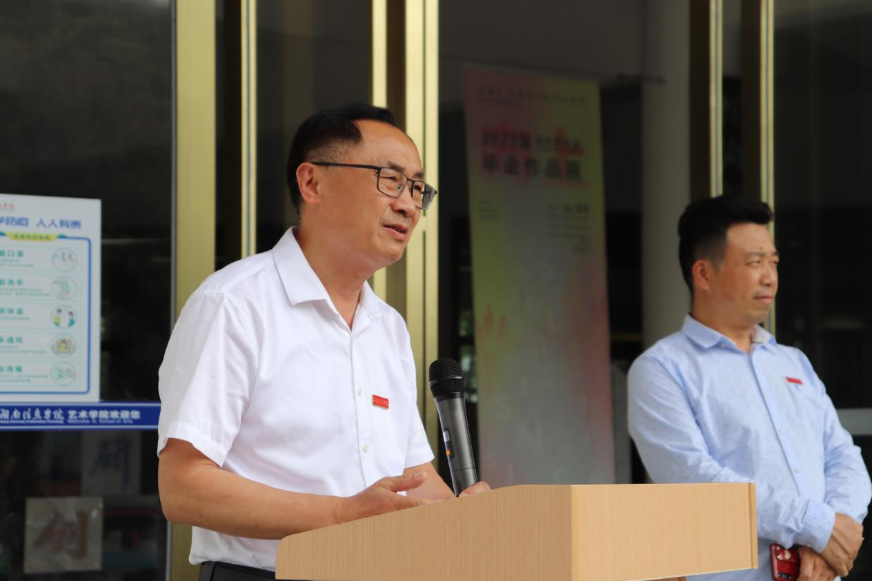 黎大志代表学校向所有毕业生表示祝贺,并对毕业生的辛勤付出和学院教师的精心指导表示肯定,然后宣布此次展览开展