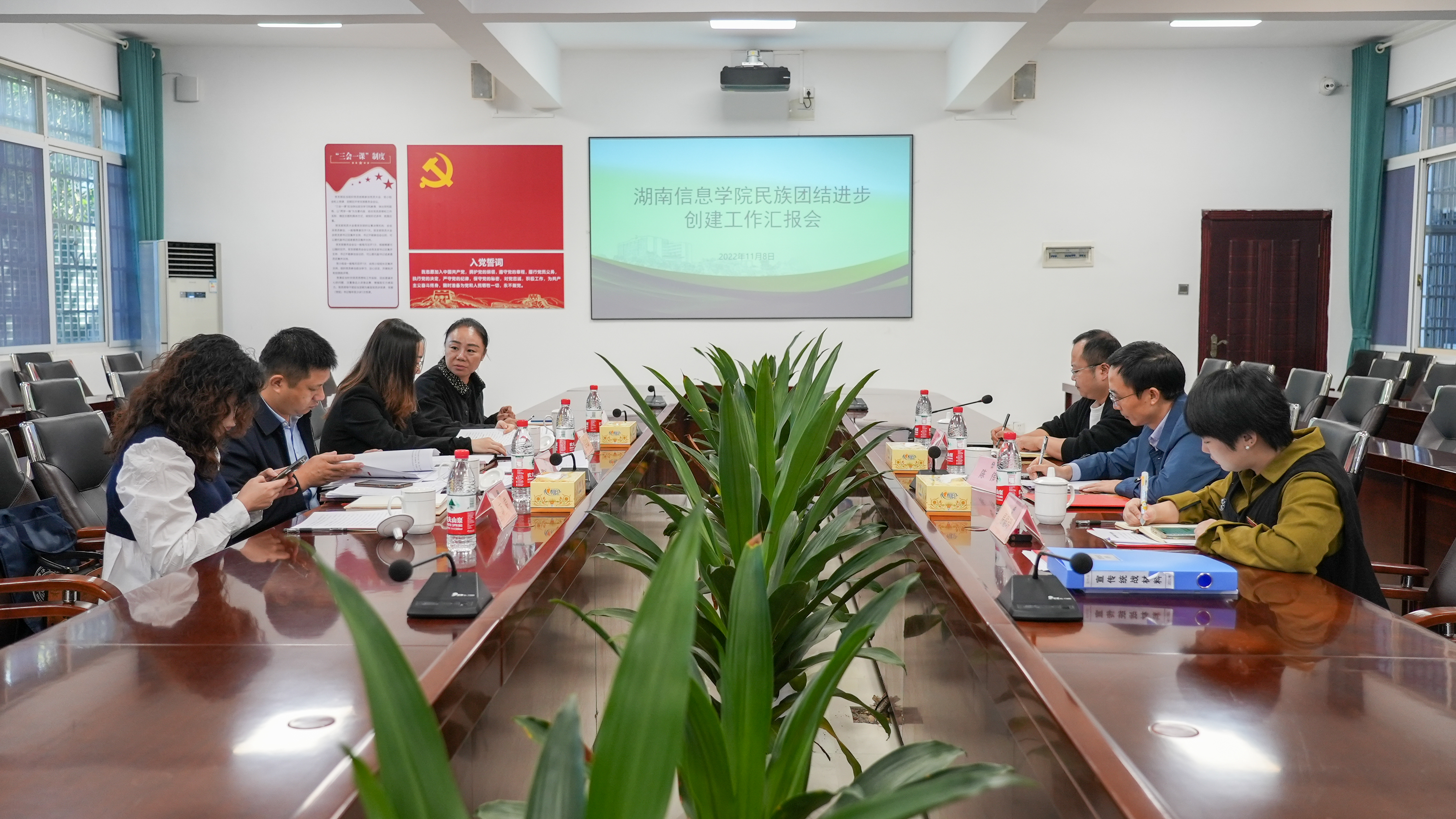 11月8日上午,长沙县统战部副部长吴笑葳、三级主任科员罗琼、民宗科副科长郑觉等一行五人来校开展民族团结进步创建工作验收,校长助理陈伟、宣传统战部常务副部长杨浩热情接待。
