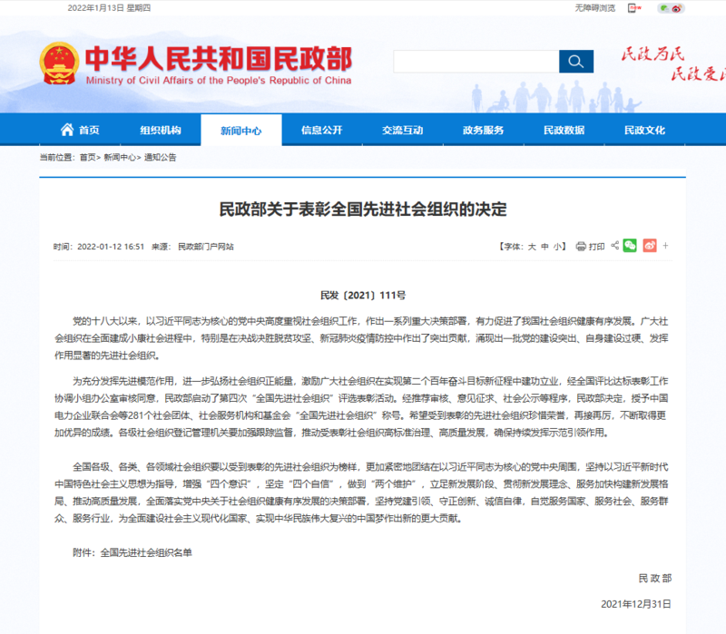 1月13日,《民政部关于表彰全国先进社会组织的决定》正式发布,我校被授予“全国先进社会组织”荣誉称号,是湖南省教育系统唯一获此殊荣单位!
