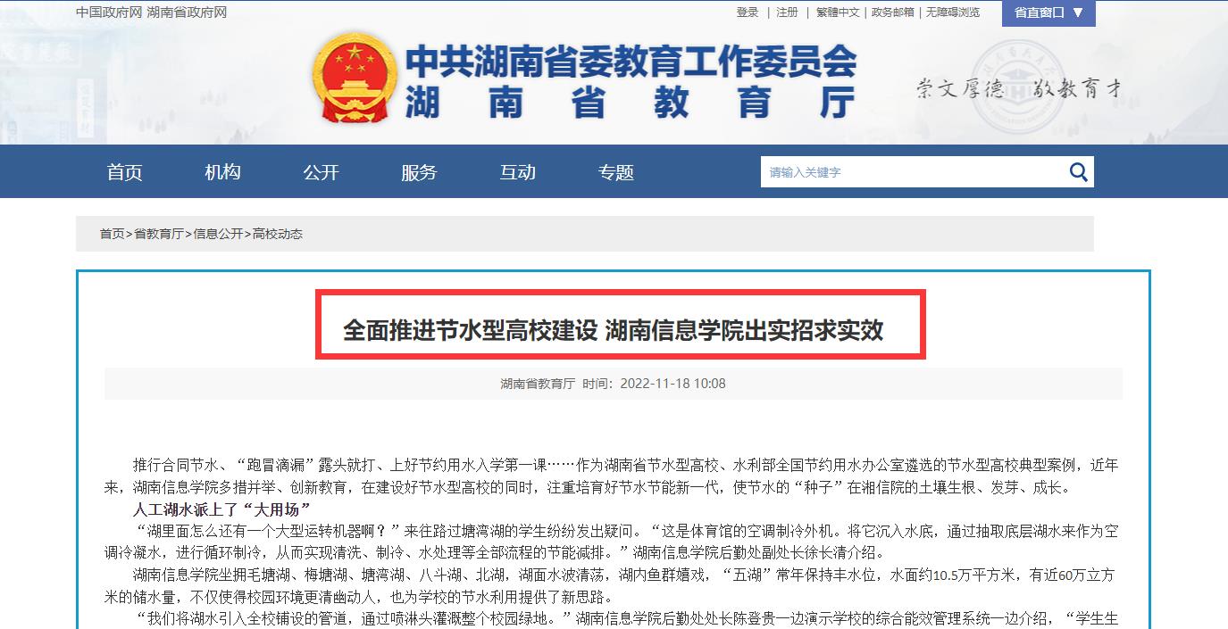 全国节约用水办公室发布了节水型高校典型案例名单,湖南信息学院光荣上榜!