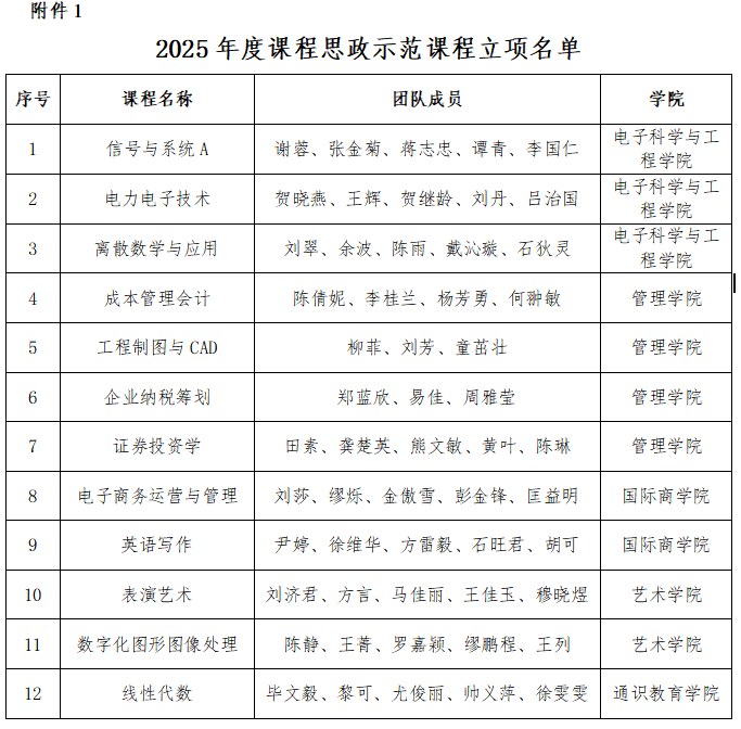 1.申报立项:批准立项12门课程为2025年度校级课程思政示范课程(详见附件1)。