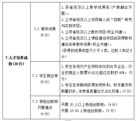 (一)现代产业学院的考核分为年度考核、中期考核与期满考核。