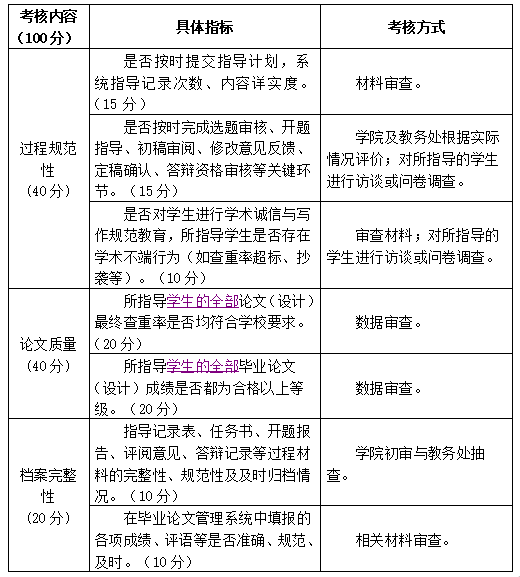 (2)重点考核指导过程规范性、论文(设计)质量及档案完整性。